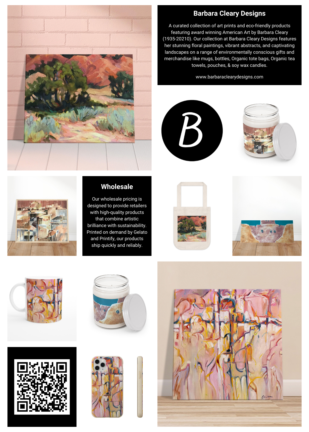 At Barbara Cleary Designs, we understand the unique needs of retailers and the design industry, which is why we offer exclusive designer and bulk discounts. By partnering with us, you can access significant savings on our exquisite collection of floral, abstract, and landscape art prints, allowing you to create stunning environments while staying within budget.
